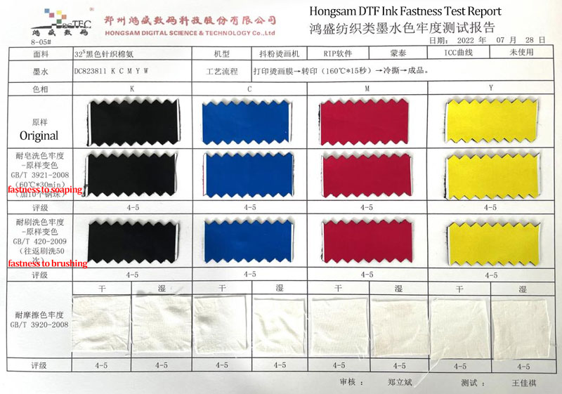 Color Fastness of Hongsam DTF Film Transfer Ink